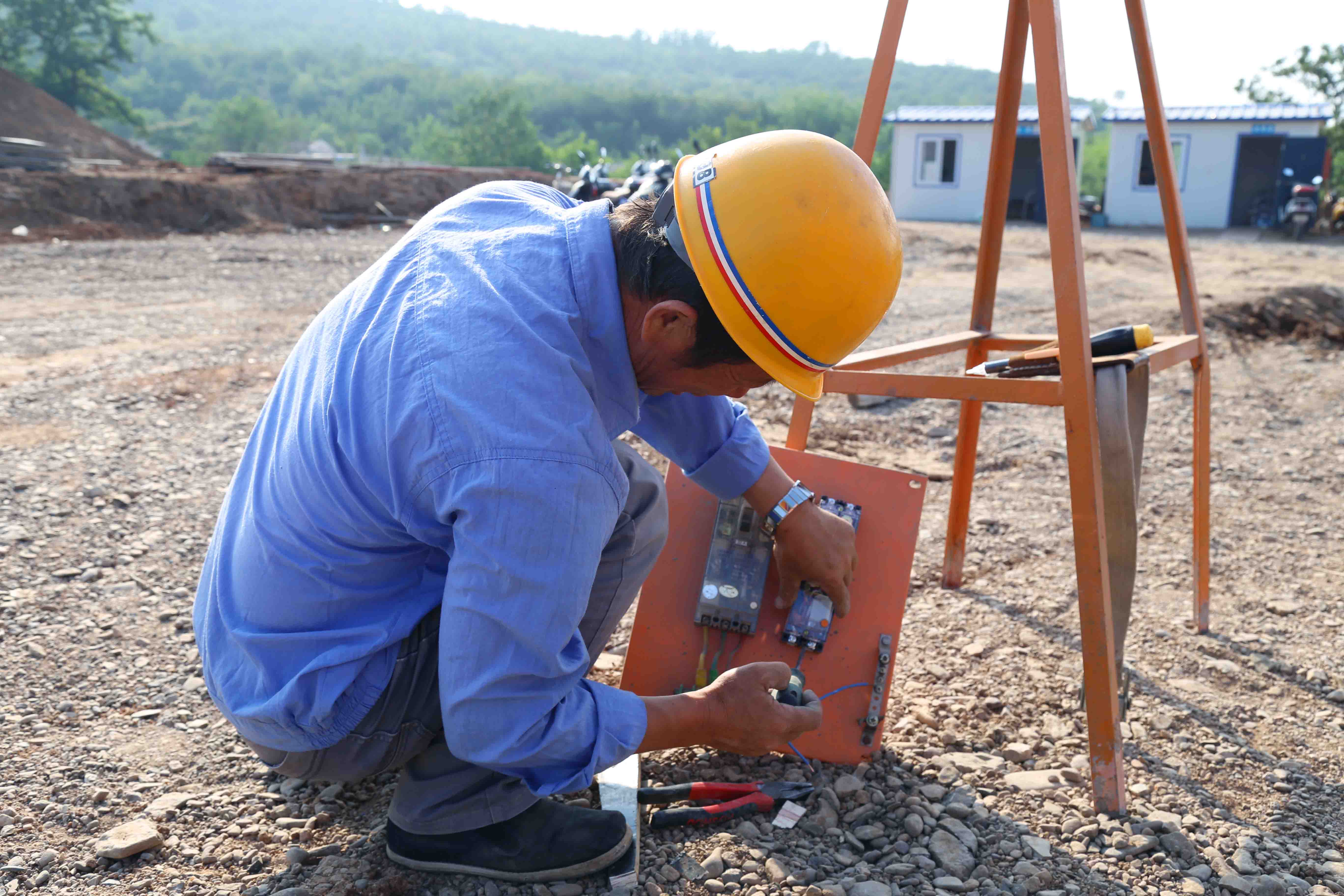 上午9點多,記者來到南山公園,漫天黃土伴隨熱浪陣陣襲來,然而,忙碌的建設者們有條不紊,搬磚的搬磚,砌墻的砌墻,渾身的汗水夾雜著黃土……在公園主山門施工場地,工人李德福正在緊張地忙碌著??此麄€不高,可干活的勁頭一點都不小,蹲在水泥地上頭都不抬,一門心思地拿錘子敲著。李德福告訴記者,他是河南人,今年46歲,正在做修建花壇的前期工作。李德福話不多,但干活很賣力氣,汗水在他黝黑的臉龐上從沒間斷過。此時,南山公園指揮部的工作人員頂著烈日準備上山,要對施工現(xiàn)場進行全面檢查,記者索性緊隨其后。施工通道是簡易的山路,檢查各個作業(yè)面有時不得不走小道。走到半山腰,一行十幾個人都已是汗流浹背,還時不時要現(xiàn)場協(xié)調相關事宜。一路前行,記者看到的是工人們頂著烈日,不停地忙碌著。記者走上南山秋觀景平臺,炎熱的天氣令人有些喘不過來氣,裸露在外的皮膚似乎有被“烤焦”的感覺,臉上的汗水已經(jīng)滴滴答答。從南山秋觀景平臺下來時,來自河南濮陽、今年55歲的修樹工人王守培吸引了記者的目光。王守培扛著比自己不知高了多少的木梯子,帶著專用的剪刀在山上走著,時不時抬頭看看身邊的樹,發(fā)現(xiàn)有問題支起梯子爬上去,拿起剪刀開始修剪。