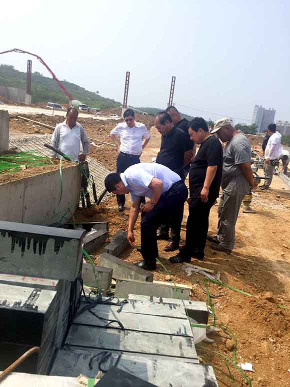 7月9日下午,薄曉放董事長(zhǎng)、喬玉濤總經(jīng)理到南山主山門廣場(chǎng)檢查工程建設(shè)情況,聽(tīng)取了項(xiàng)目經(jīng)理關(guān)于工程進(jìn)度和材料質(zhì)量等相關(guān)工作的匯報(bào)。